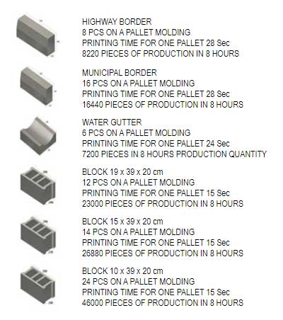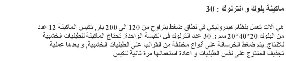 لوحات خشبية سعة الكبس عليها 30 عدد من حجر الأرصفة و 12 عدد بلوك (20*40*20) في الكبسة الواحدة
