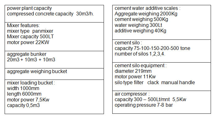 NBS 30-K CONCRETE PLANT TECHNICAL SPECIFICATIONS