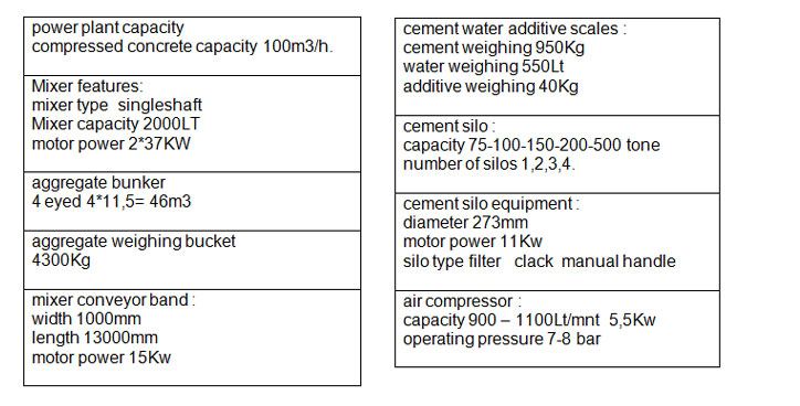 NBS 100-M CONCRETE PLANT TECHNICAL SPECIFICATIONS