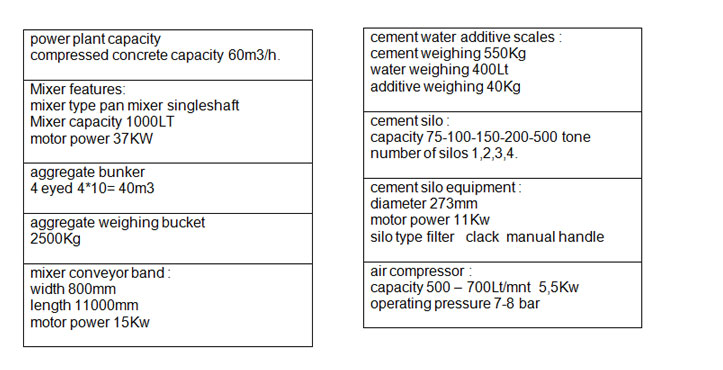 NBS 60-M CONCRETE PLANT TECHNICAL SPECIFICATIONS