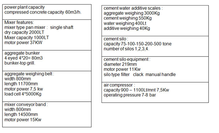 NBS 60-S CONCRETE PLANT TECHNICAL SPECIFICATIONS