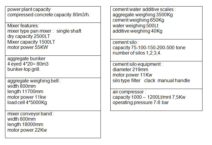 NBS 80-S CONCRETE PLANT TECHNICAL SPECIFICATIONS