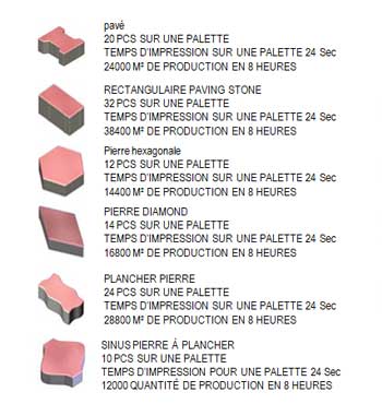 Il s'agit d'une palette en bois avec 20 pcs de pavés et une capacité de presse de 8 briquettes (20x40x20) en une seule impression.