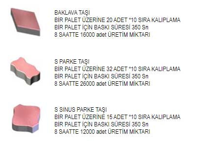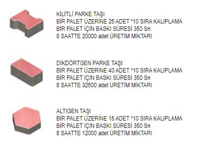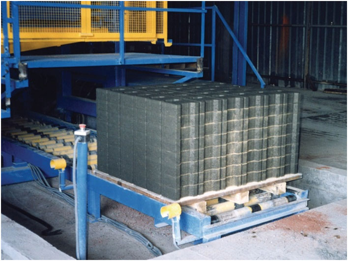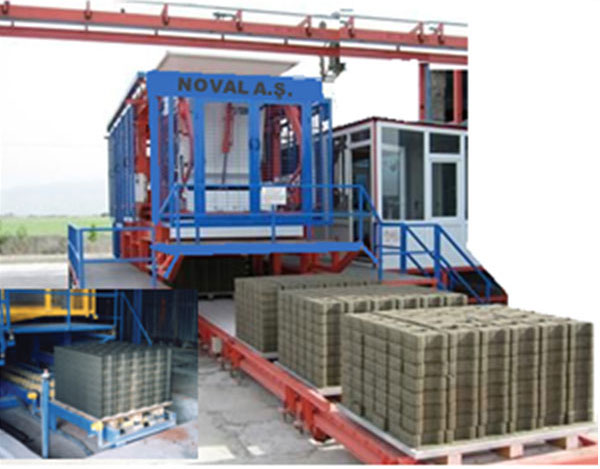 Otomatik sistemde briket ve beton parke taşları üst üste istiflenir ve bu şekilde kuruma sahasından ve ve işçilikten tasarruf edilir. Taşıma için forklift kullanılır.