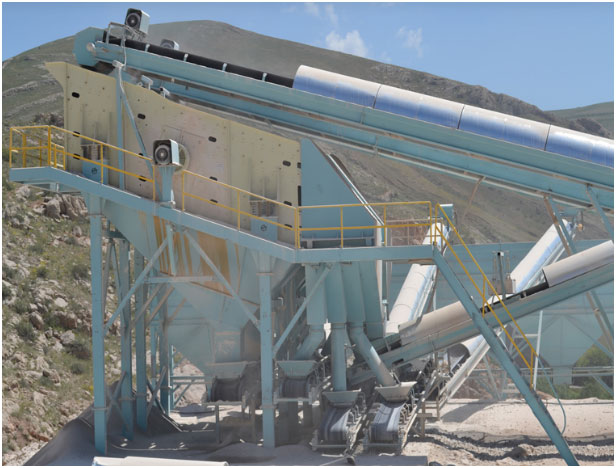 Titreşimli elekler bir kırma eleme tesisinde
